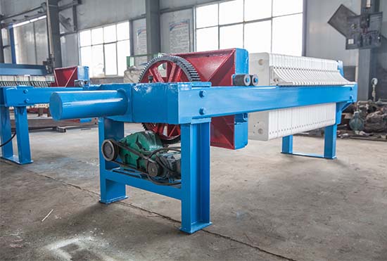 機(jī)械壓緊壓濾機(jī)壓緊時(shí)由電動(dòng)機(jī)帶動(dòng)減速機(jī),經(jīng)傳動(dòng)部件推動(dòng)壓緊板壓緊濾板。壓緊螺桿和固定螺母設(shè)計(jì)有可靠的自鎖螺旋角,能保證壓緊時(shí)的可靠性和穩(wěn)定性,用電機(jī)綜合保護(hù)器實(shí)現(xiàn)自動(dòng)控制。可對(duì)電機(jī)實(shí)現(xiàn)過(guò)熱和過(guò)載保護(hù)。